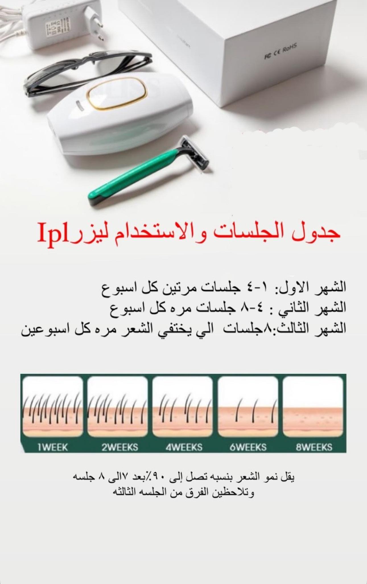 - لا يُستخدم الجهاز على البشرة الداكنة جداً أو الشعر الأبيض/الأشقر الفاتح جداً.