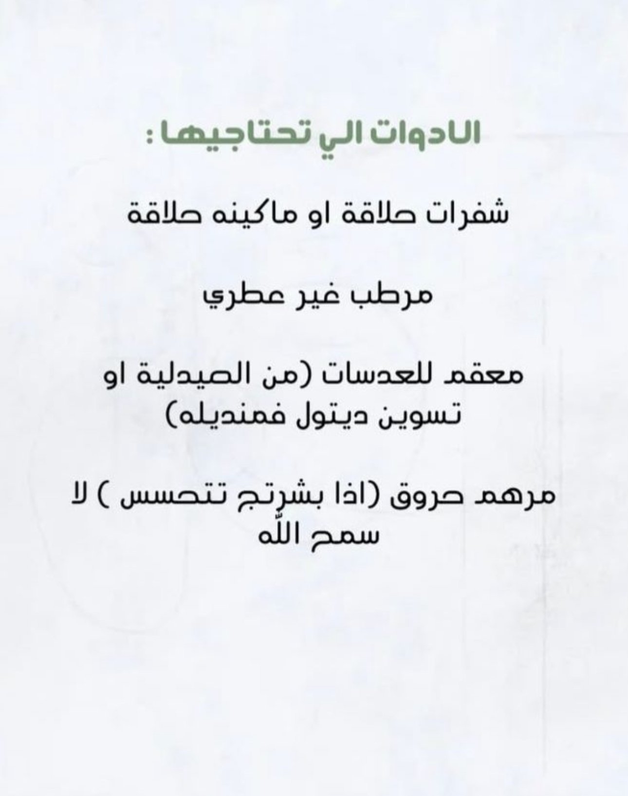 - يُفضل ترطيب الجلد بكريم مهدئ (مثل الألوفيرا)